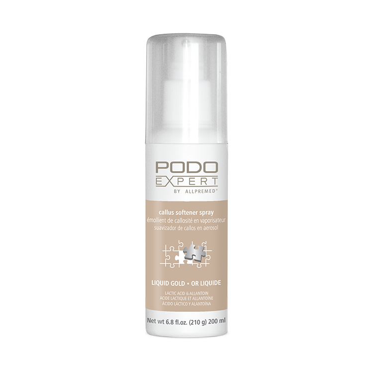 Ready-to-use LIQUID GOLD callus softener spray with Triple Effect3